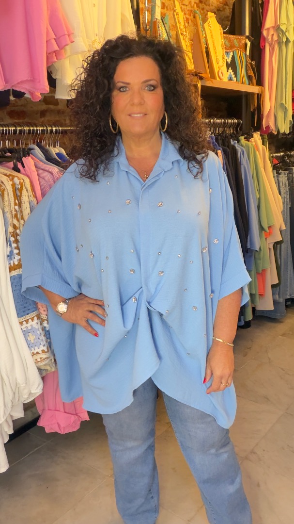 Zeer aparte blouse. De voorkant zit vol met Mooie strass steentjes.