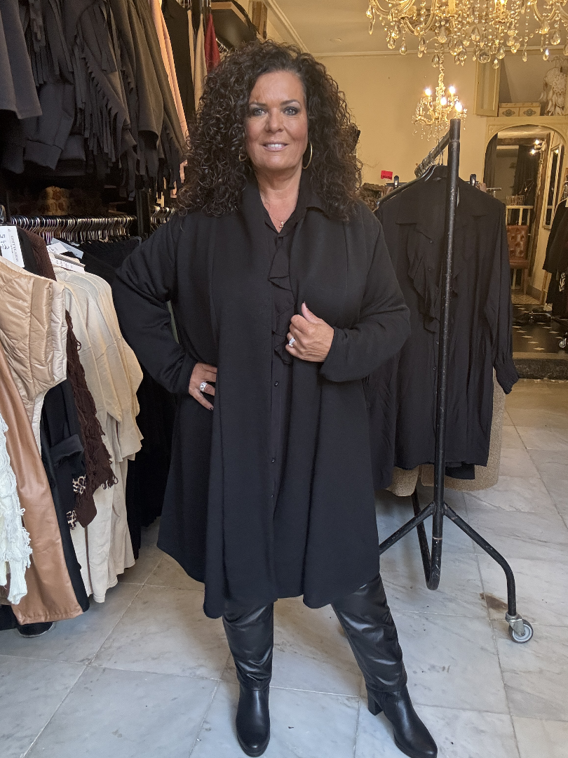 Een vest die we eigenlijk vaker in onze collectie hebben, in een zomervariant en dit is weer de wintervariant. Dus een mooie dikke kwaliteit stof, gemaakt van 60% viscose 35% polyester en 5%. Elastan.