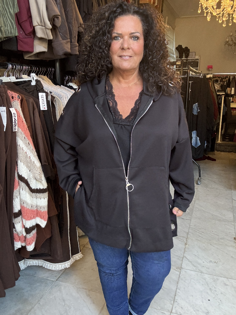 Super stoer oversized vestje met ringen. gemaakt van 95% viscose en 5% elastan. heeft een oto van 80 en lengte van 80. zeer oversized te dragen en past tm 56/58