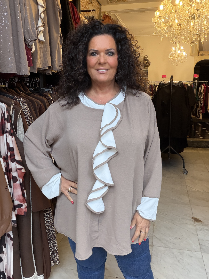 trendy blouse gemaakt van 60% polyester, 35% viscose en 5% elastan.