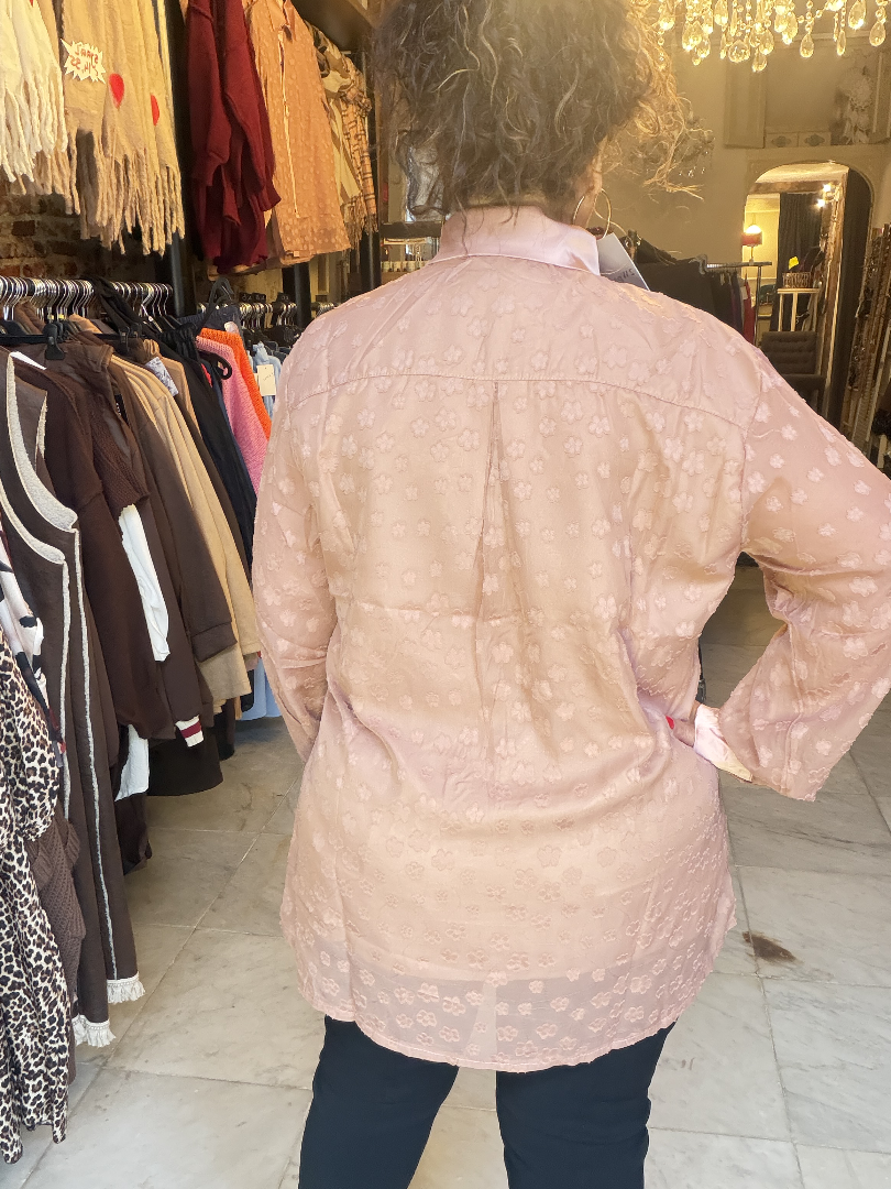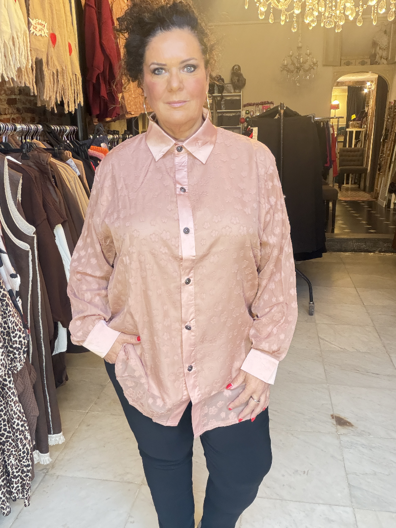 Oud roze blouse, mooi shifon stof met bloemetjes,
