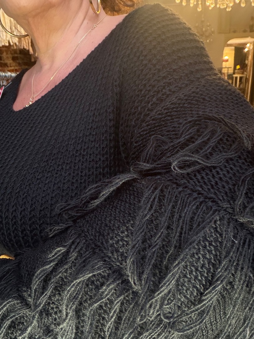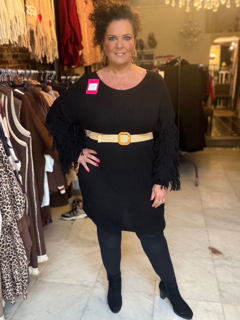 Leuke, stoere, jurk met franje mouwen. Gemaakt van 100% acryl.
