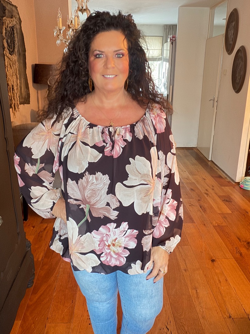 Onze klassieke ballondop. 100% viscose, voor en achterkant geheel gevoerd, daaroverheen zit een mooie.Chifon Wijde top.