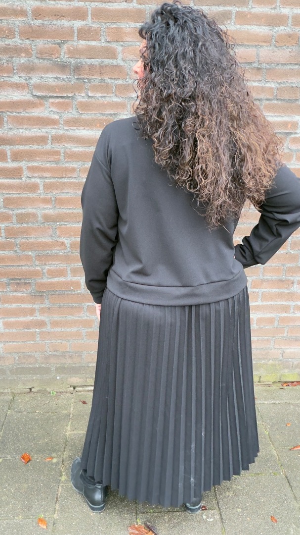 Aparte jurk. Het is 1 geheel maar t lijkt net een plissé rok met een trui erop.