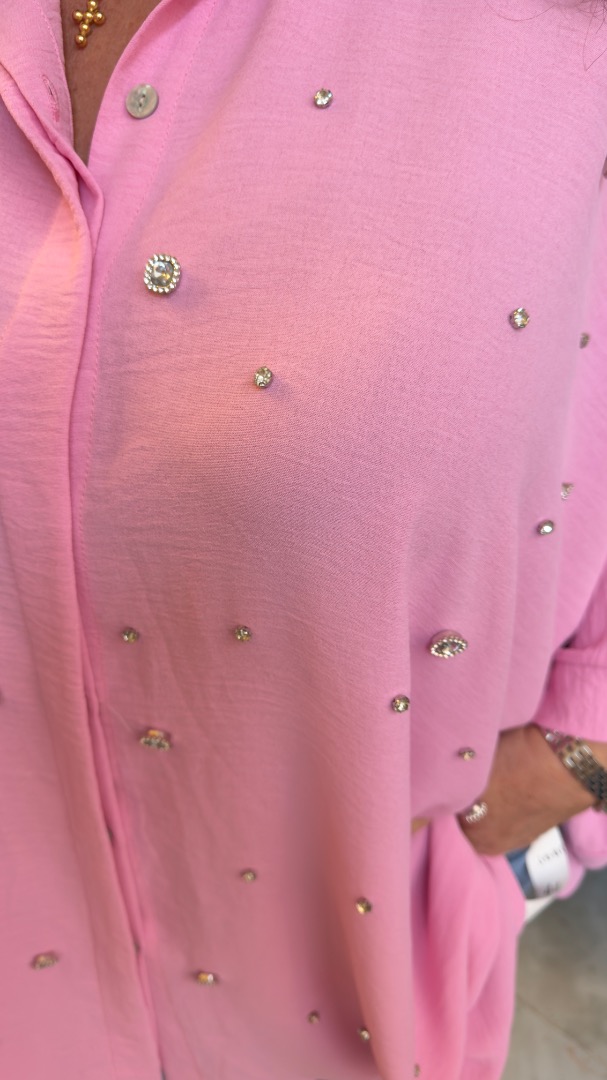 Zeer aparte blouse. De voorkant zit vol met Mooie strass steentjes.