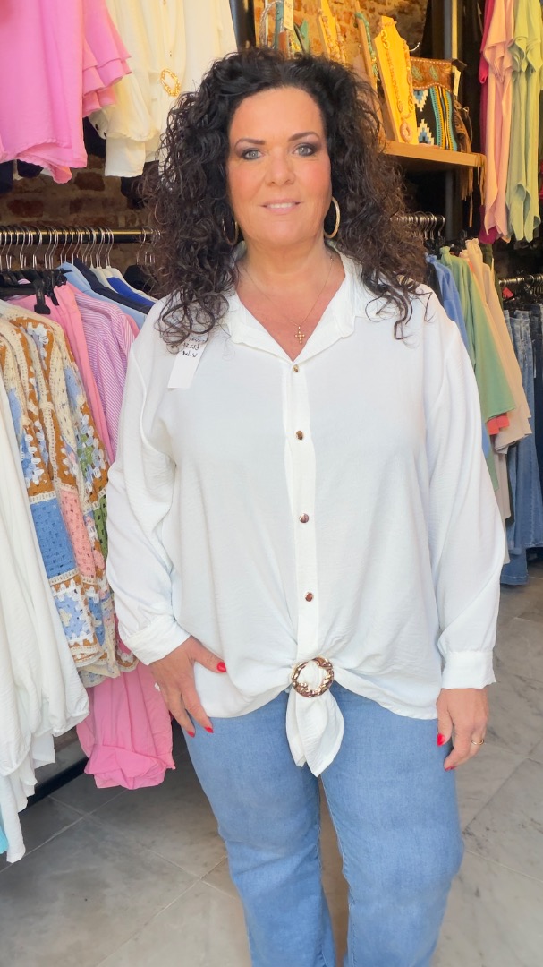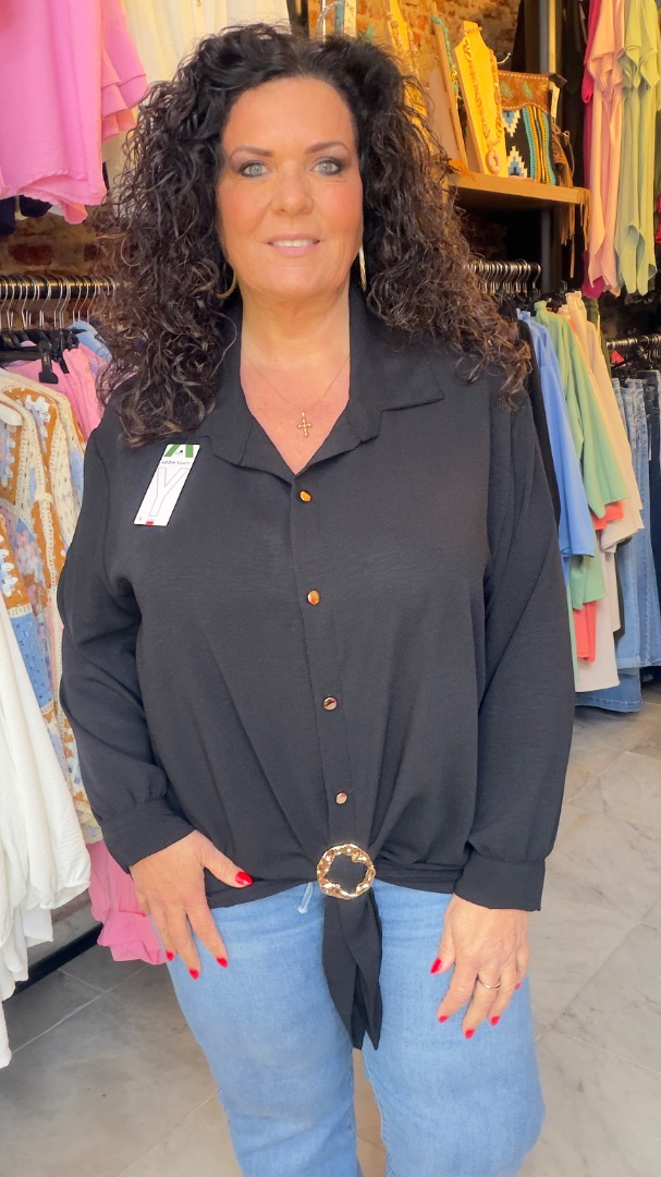 Blouse gemaakt van 100% viscose. Voorzien van gouden knoopjes en een Gouden gesp.