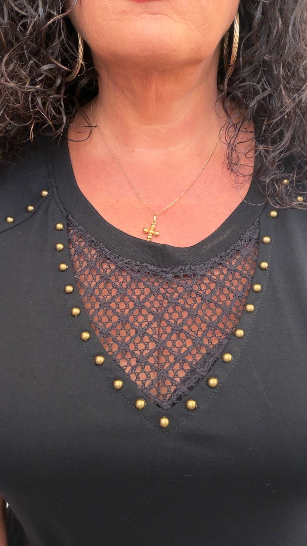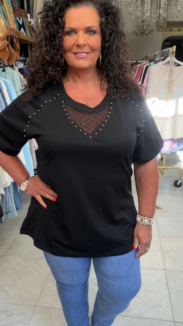Kijk eens wat een apart T-shirt, stoere details, leuk voor op een spijkerbroek.