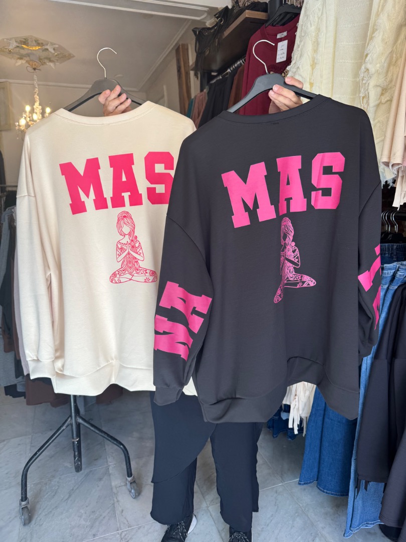 Deze trui mag je heerlijk oversized dragen, en past tot en met met 56