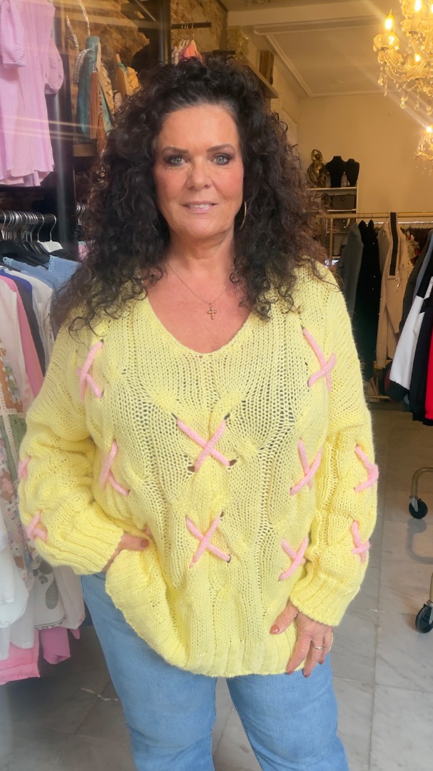 Kijk eens wat een leuke trui. Gemaakt van 100% acryl. Heeft een oksel tot oksel van 80 en een lengte van 80.